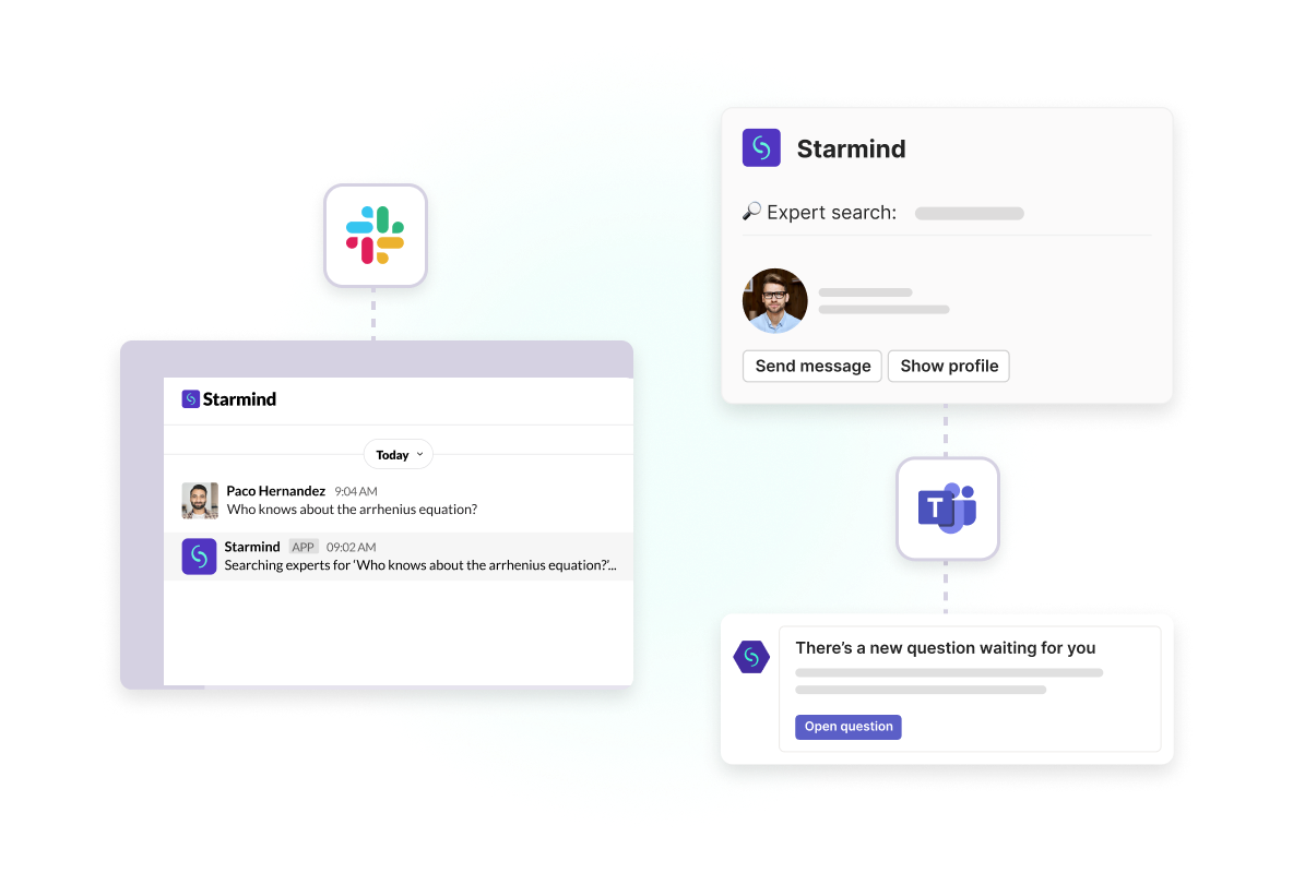 Seamlessly integrate Starmind with your existing enterprise tools to capture and share expertise right where your team works. No more searching, switching apps, or losing knowledge in silos.